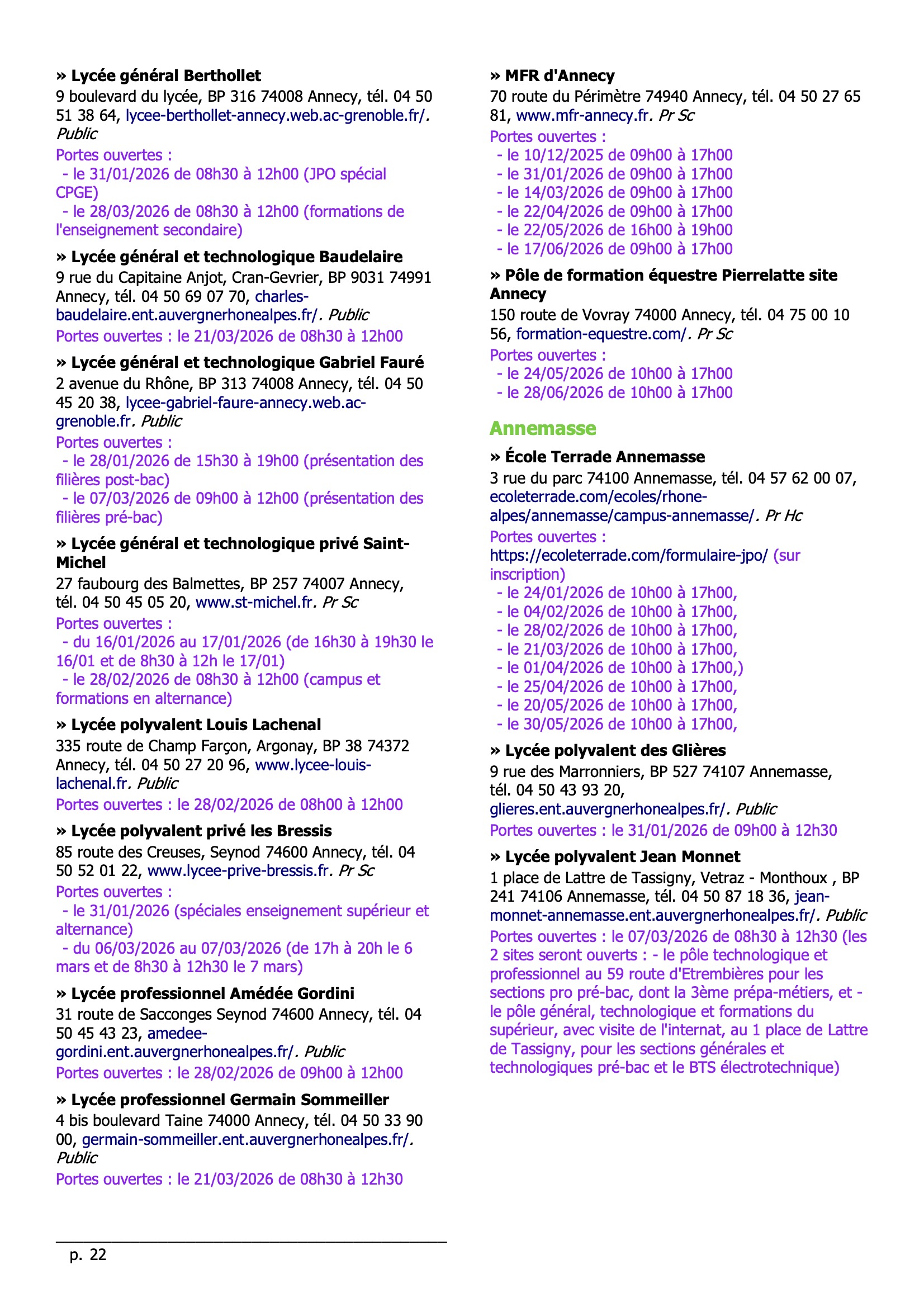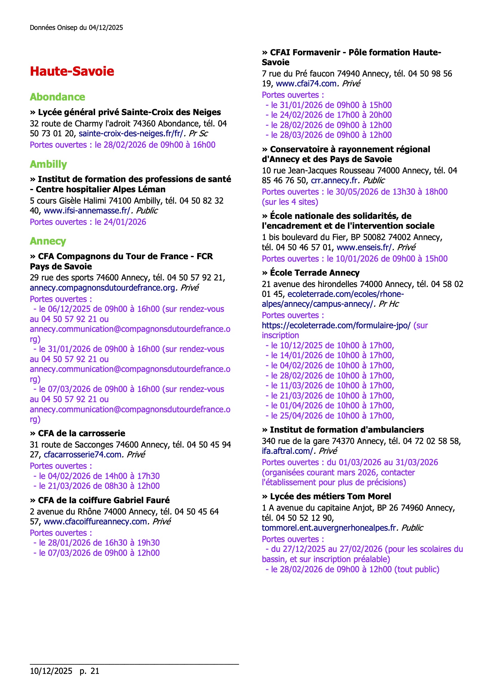 Voir en bas de l'article pour télécharger le fichier PDF des portes ouvertes de toute l'académie