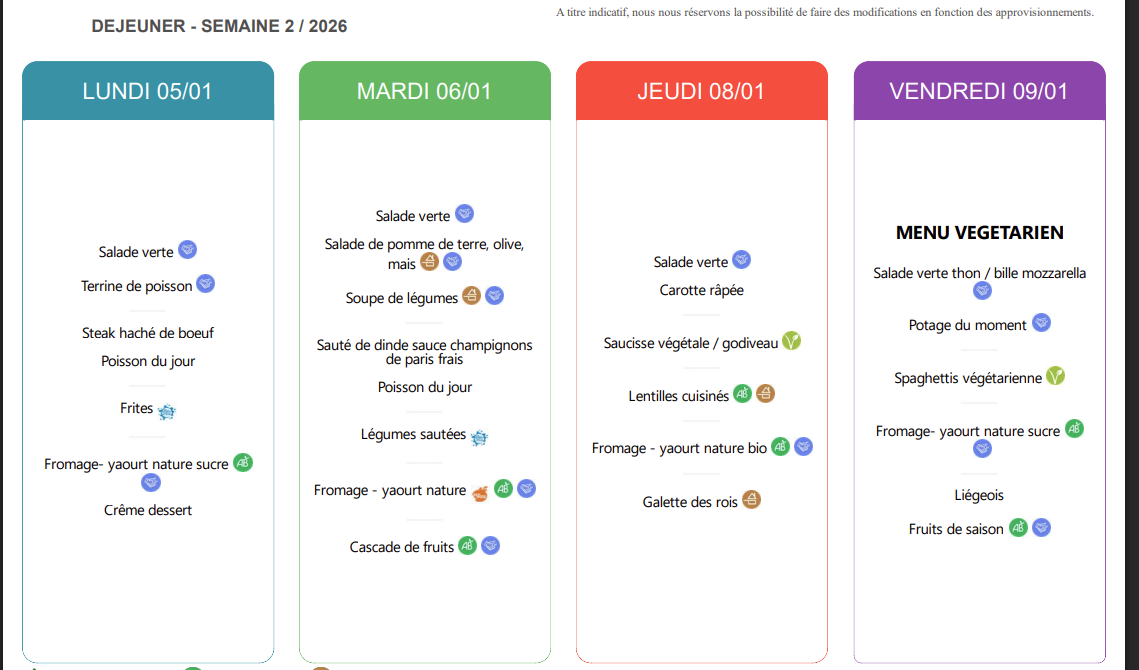 Veuillez trouver ci-joint le menu du 5 au 9 janvier 2026.